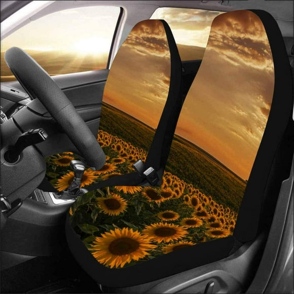 Sunflower Car Seat Covers Large Sun Flowers On Black Set Of 2 Etsy Uk